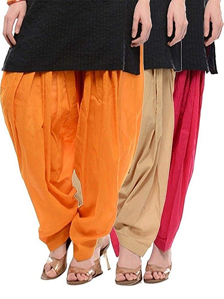 BILOCHI'S Women's Cotton Patialas (Orange, Beige and Rani Pink, Free Size) Combo Pack