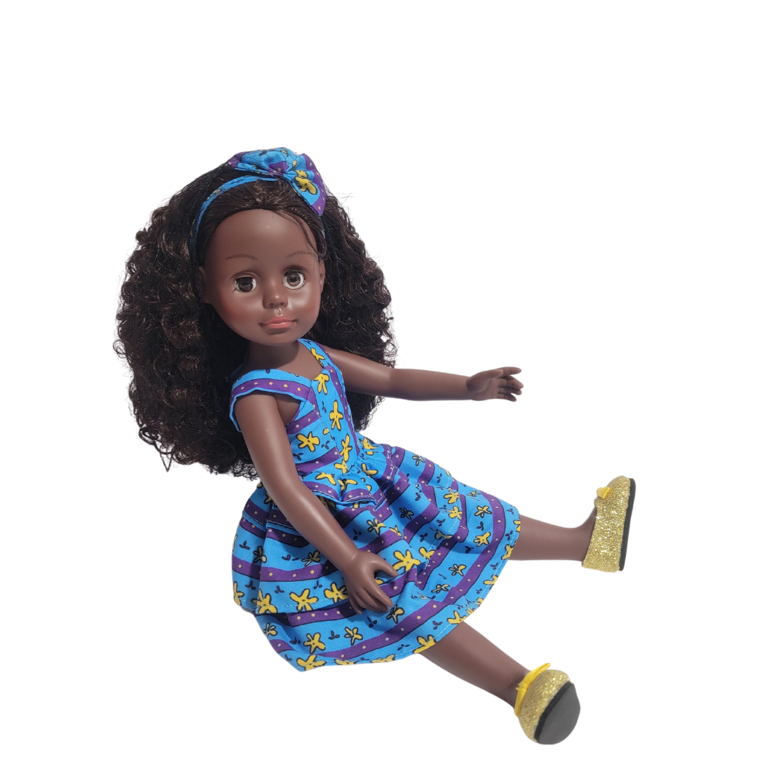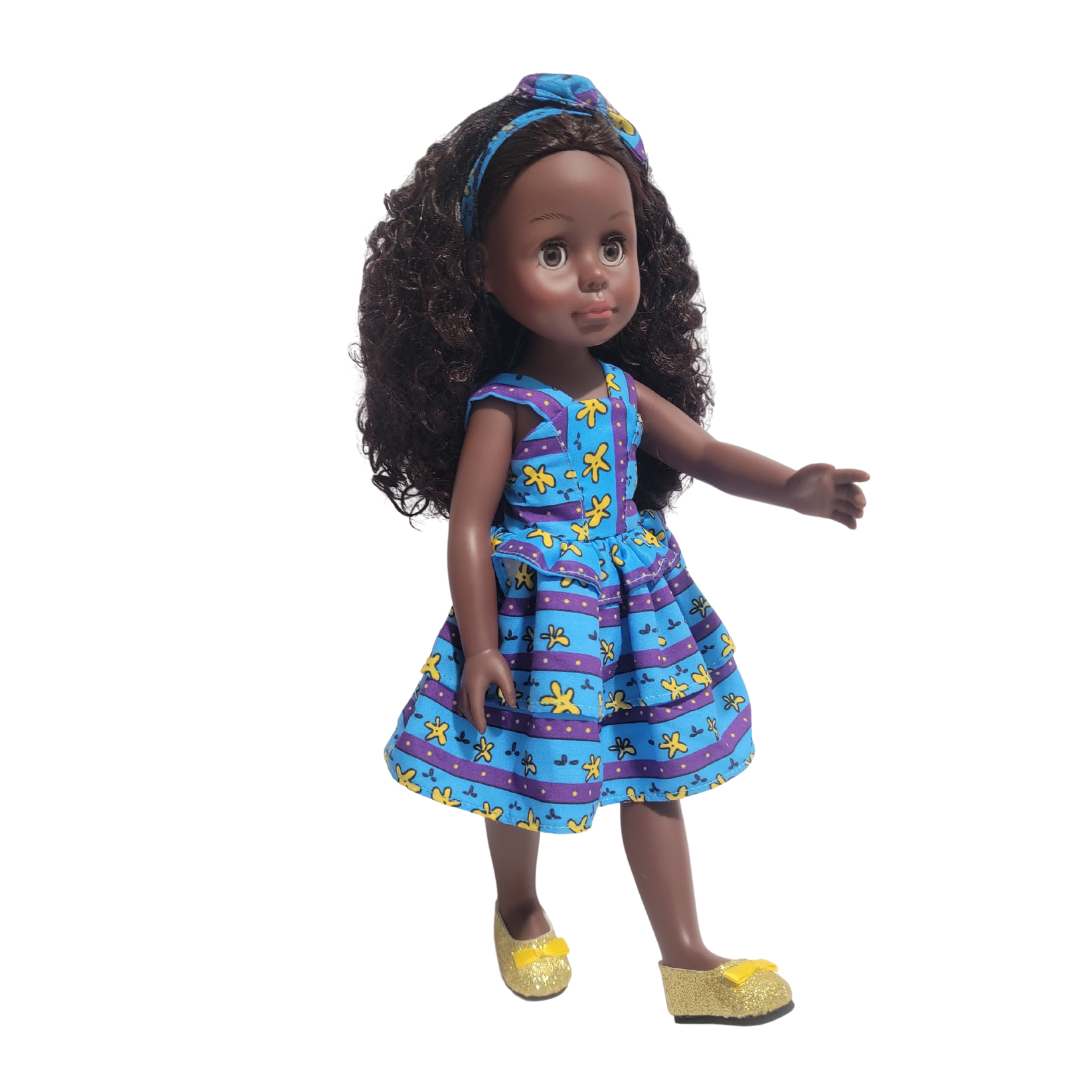 Dressed in her uniquely designed dress and her sparkled yellow shoes and head band, she is the perfect gift for your little ones.